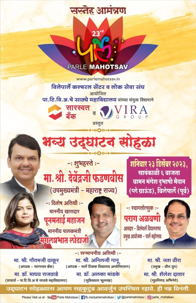 Lets witness ” भारत के रंग,नृत्य के संग ” an iconic combination of divers culture of India during the inauguration of ’23rd Parle Mahotsav’ organised by Shri Parag Alwani,MLA and VILE PARLE CULTURAL CENTRE with LOK SEWA SANGH and collaboration with Sathye College.
